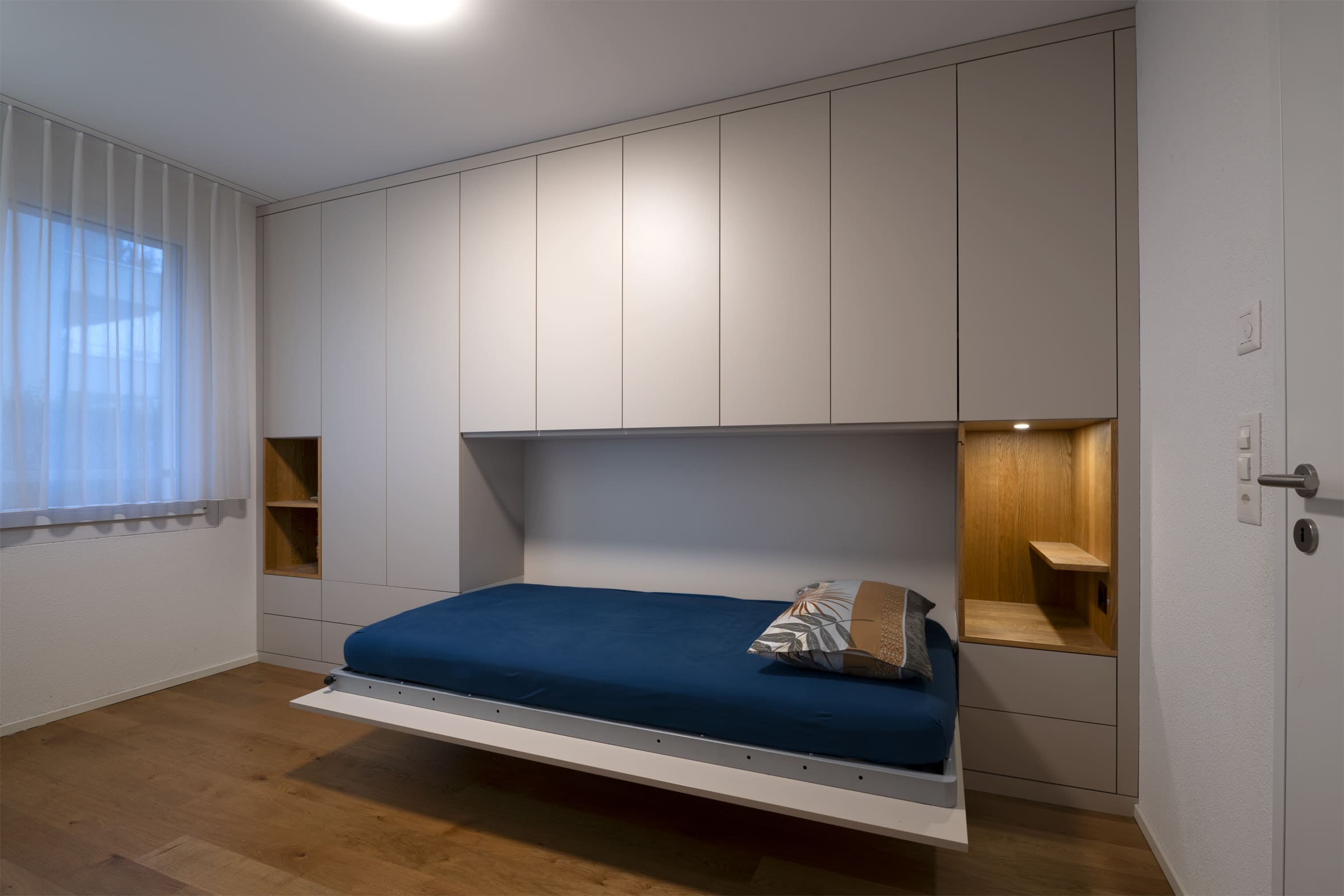 Ein massgeschreinertes Bett mit integriertem Nachttisch oder ein Klappbett ist die perfekte Lösung für alle, die Wert auf Komfort, Stil und Funktionalität legen. Bei easyschrank gestalten Sie Ihr Bett nach Mass – individuell, hochwertig und genau so, wie Sie es sich wünschen. Egal, ob Sie ein Klappbett nach Mass suchen, das sich harmonisch in Ihr Schlafzimmer einfügt, oder ein Bett nach Mass mit Stauraum, das Ihnen zusätzlichen Platz bietet – wir haben die passende Lösung für Sie.