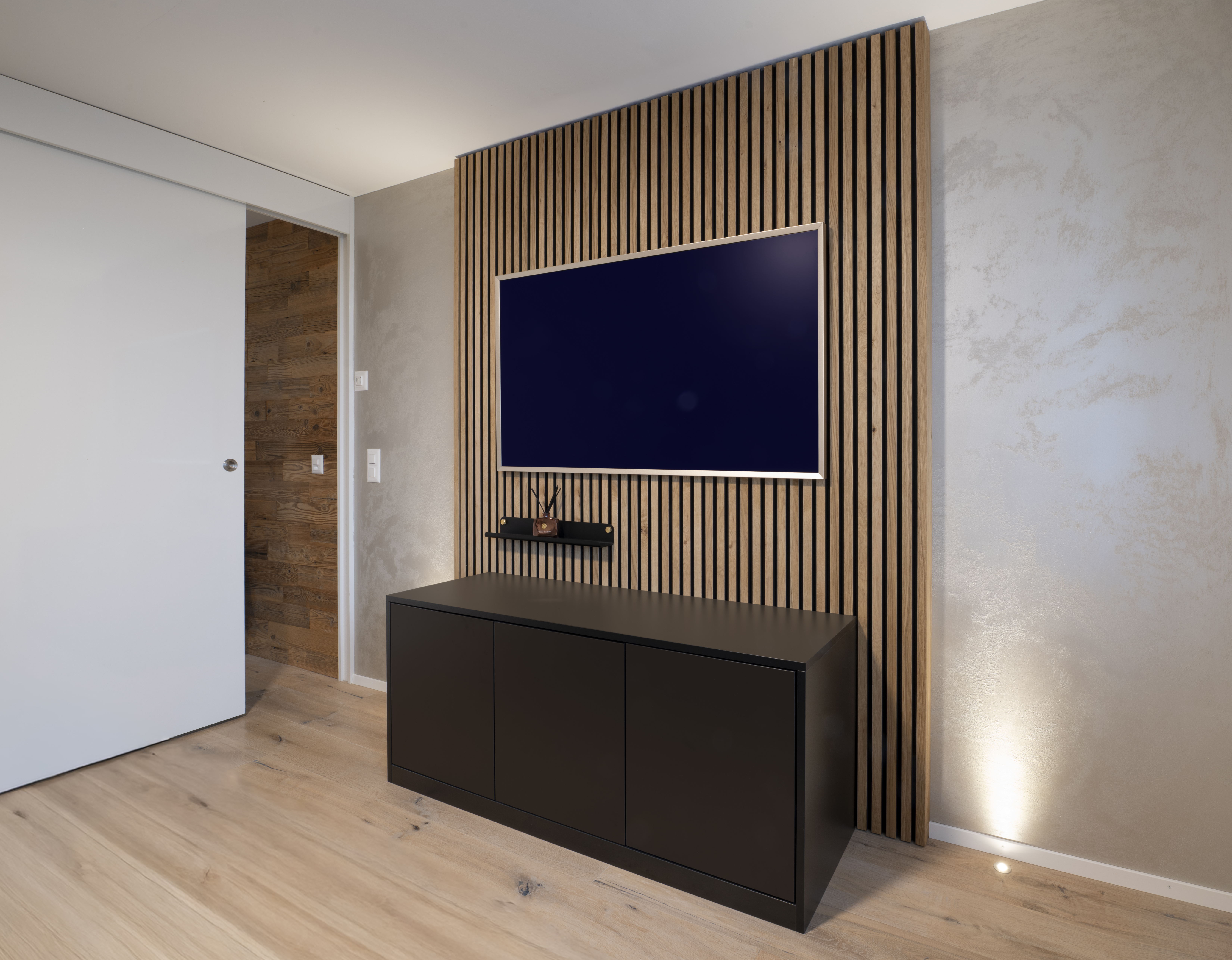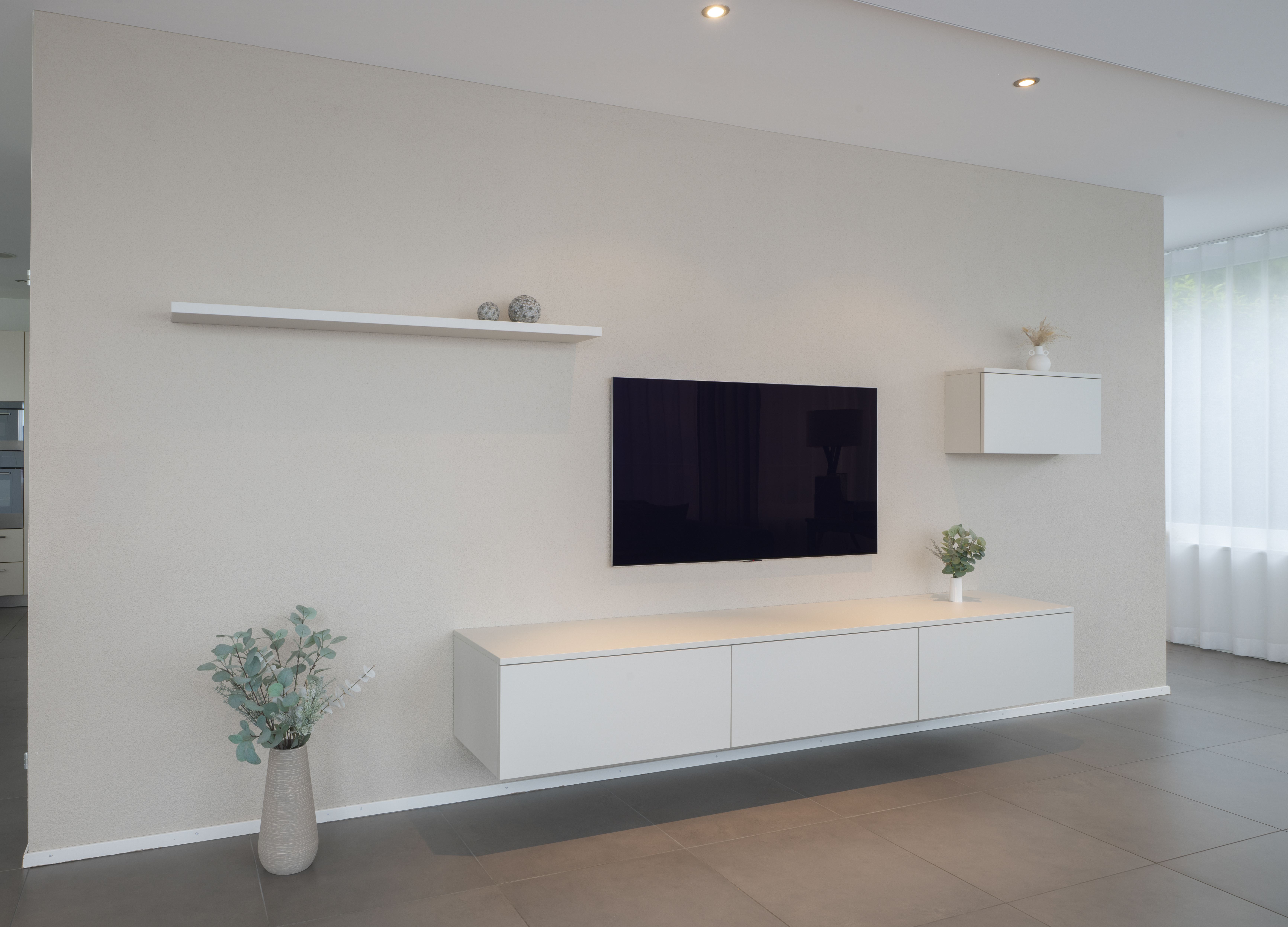 Ihr Wohnzimmer ist Ihr persönlicher Rückzugsort und es sollte genauso aussehen, wie Sie es sich wünschen. Individuelle TV-Möbel bieten Ihnen die Freiheit, Ihr Zuhause ganz nach Ihrem Geschmack zu gestalten. Vielleicht träumen Sie von einem eleganten Lowboard, das Ihren Fernseher stilvoll in Szene setzt, oder Sie möchten eine ganze Wand in ein Mediencenter verwandeln, das nicht nur den TV, sondern auch Lautsprecher, Spielekonsolen und vieles mehr integriert. Mit massgeschreinerten TV-Möbeln sind Ihrer Fantasie keine Grenzen gesetzt.